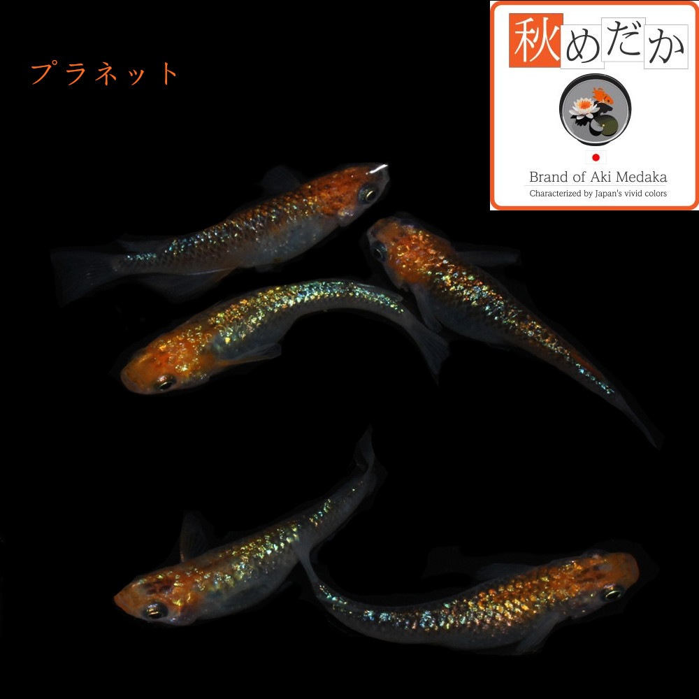 プラネットは、朱赤から柿色の美しい色合いと、輝くラメが特徴のメダカです。
